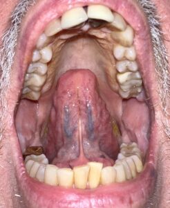 These environments conducive for bacterial growth exist on the tissue side of complete dentures, in the tonsillar region, and on the back of the tongue, especially when there is post-nasal drip. Even in the absence of teeth, meticulous oral hygiene should be practiced as if the patient’s life depended on it. Patients with any level of gum disease, including, and most importantly, gingivitis (bleeding gums), should be doing something different at home. In patients with gum disease, the bacteria load is higher than their immune systems can handle.